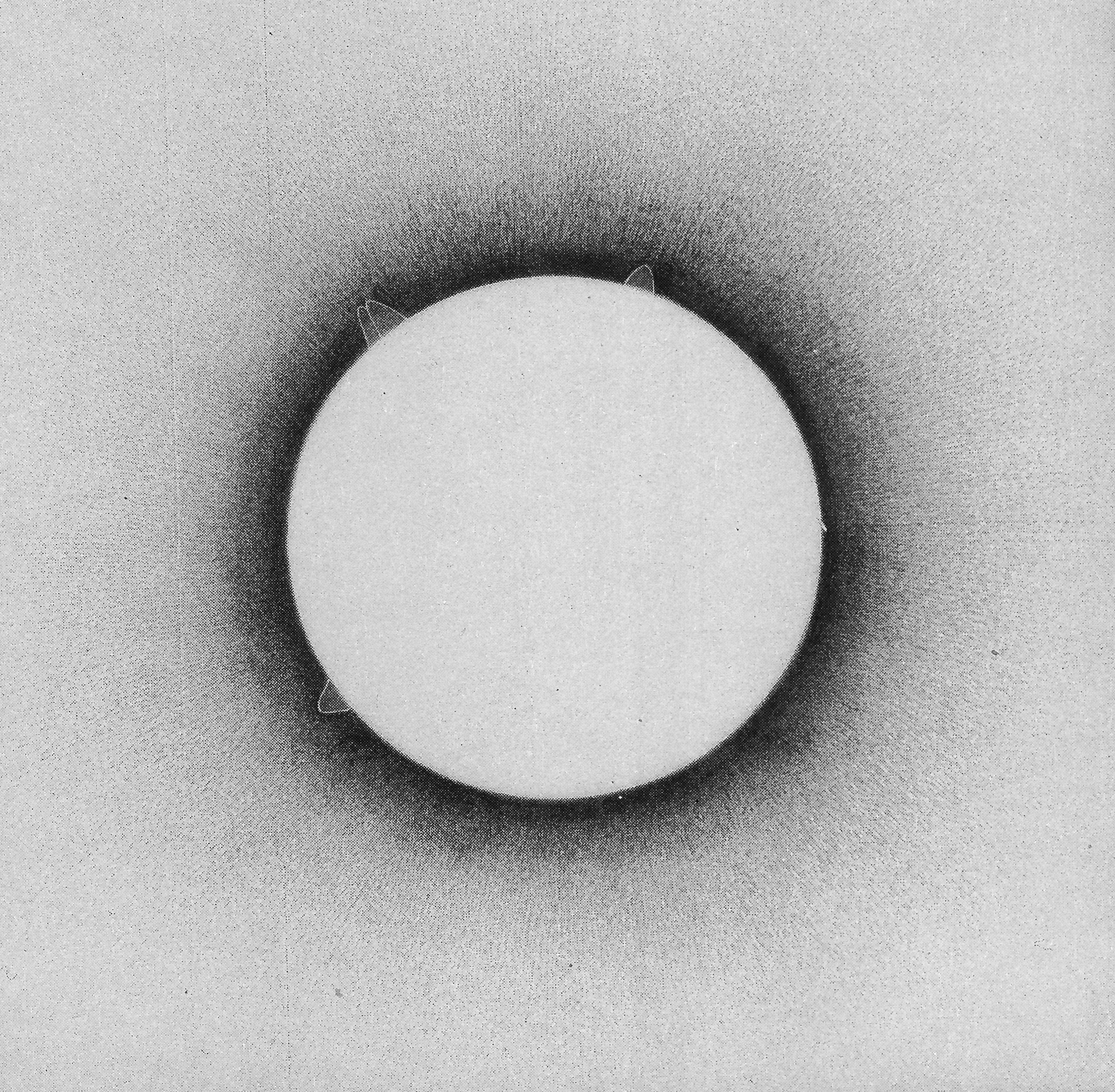 Fig. 01. F. Baily – Illustration of the 1842 solar eclipse with four prominences.
